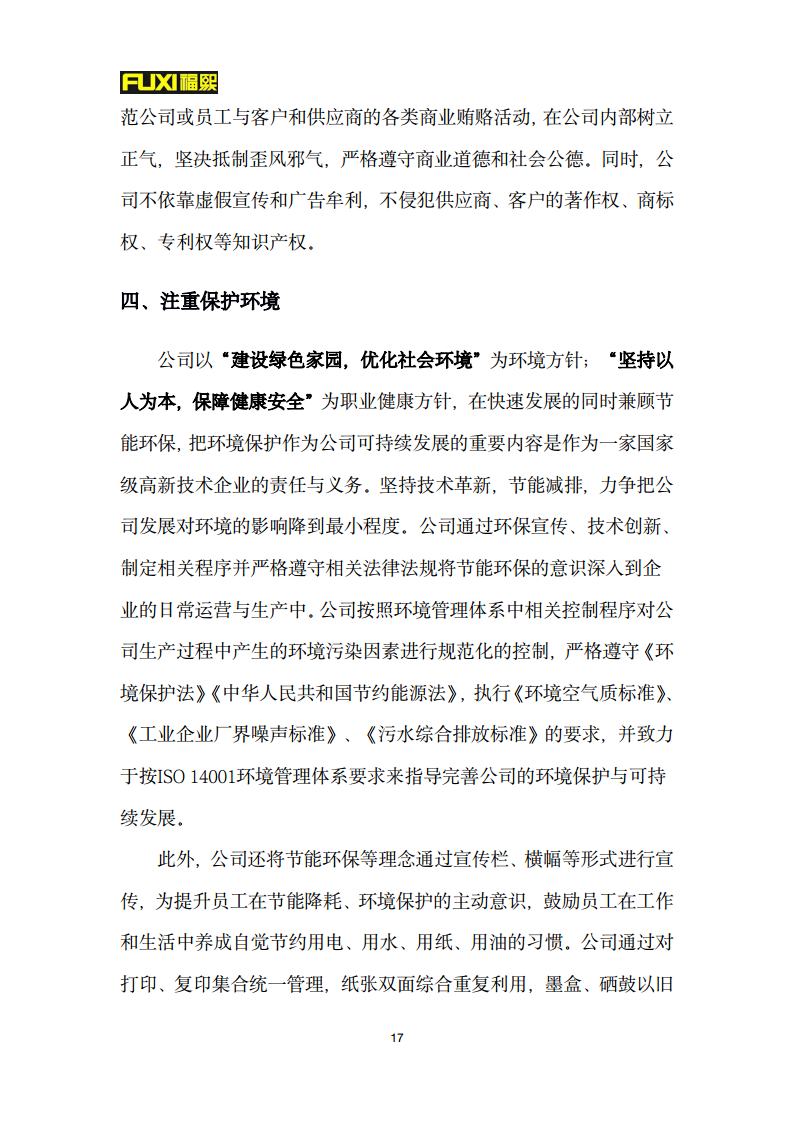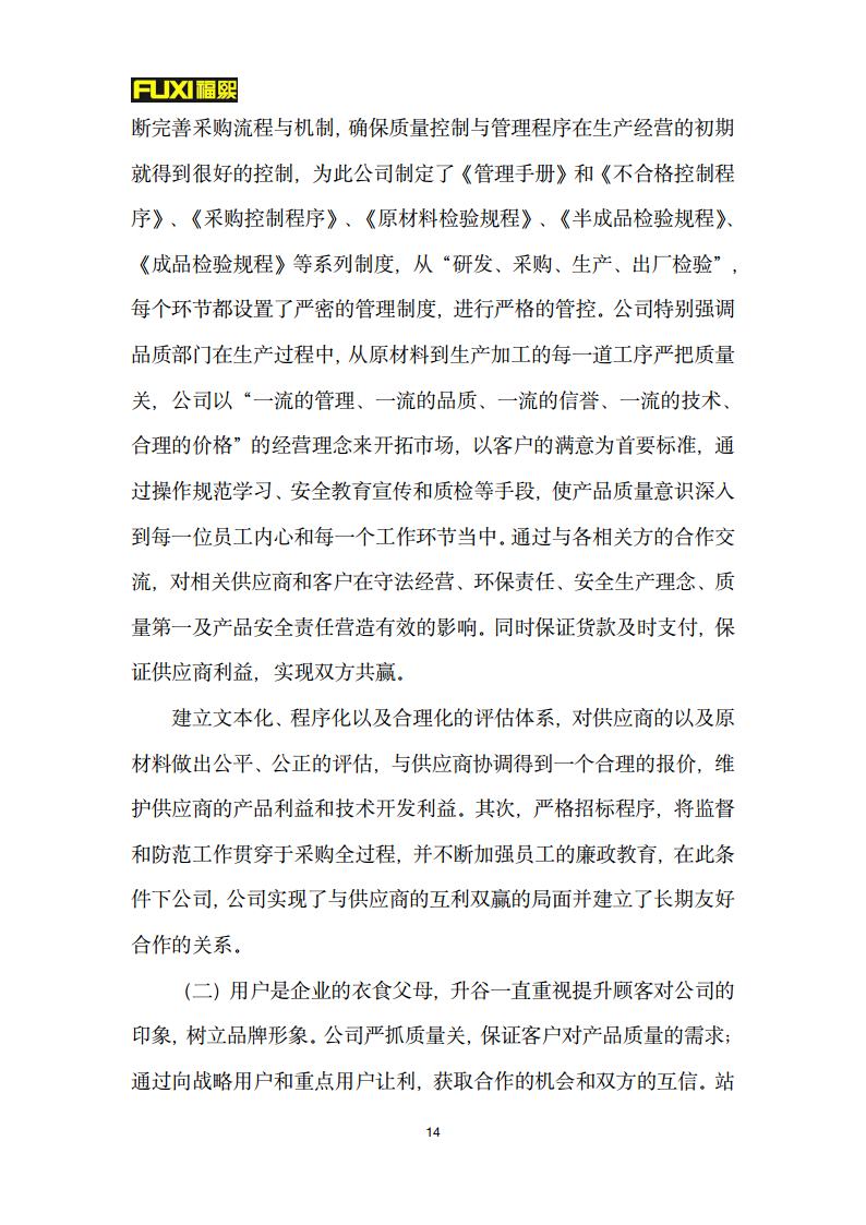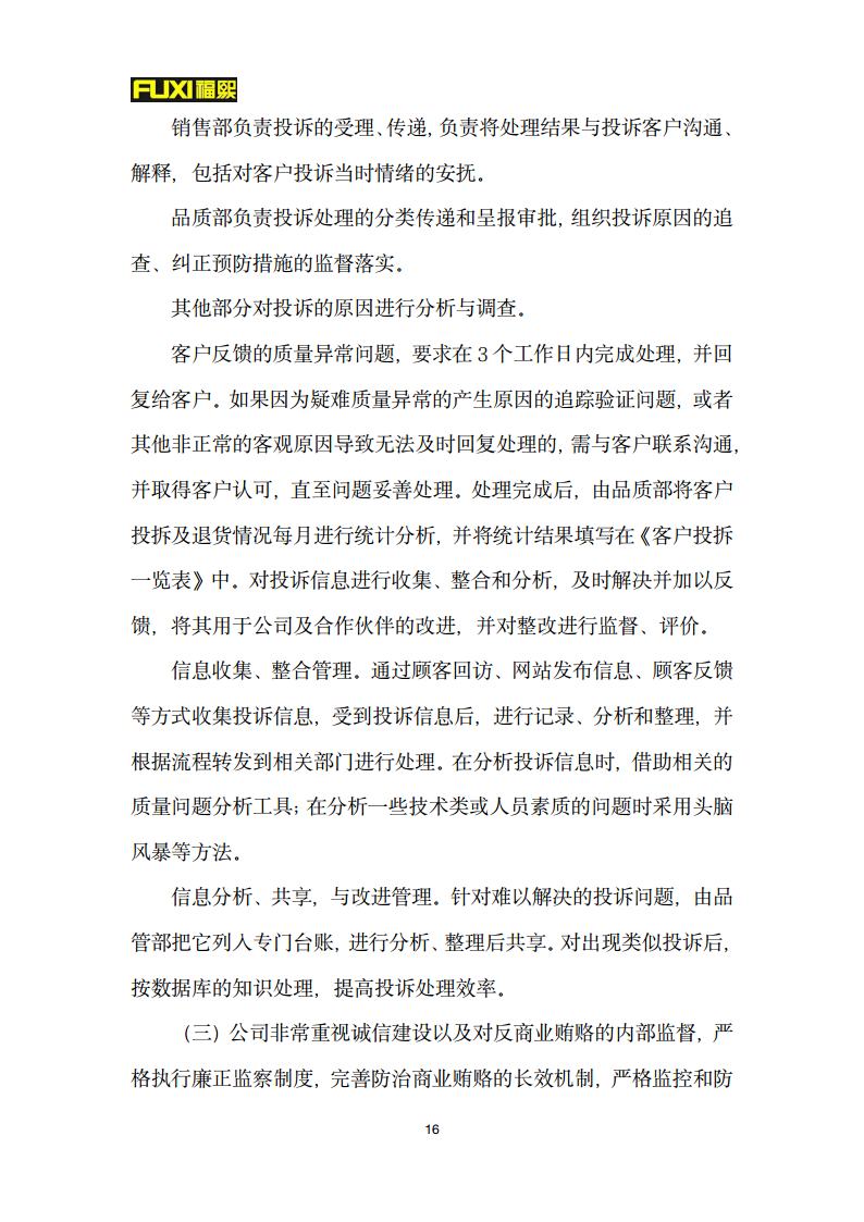 福熙質(zhì)量誠(chéng)信報(bào)告